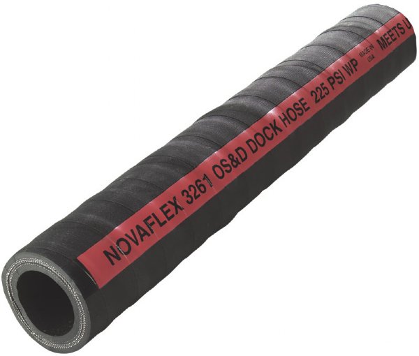 Esta es una manguera multi-propósito diseñada para aplicaciones de succión y descarga. Esta manguera de transferencia en muelles es altamente flexible y tiene una cubierta para todo clima resistente a aceite, cortes, abrasión y perforaciones. El tubo es resistente a productos de petróleo con contenido de aromáticos del 50%. Cumple todos los requerimientos de la Guardia Costera de EE.UU. para manguera de transferencia en muelles/OS & D.